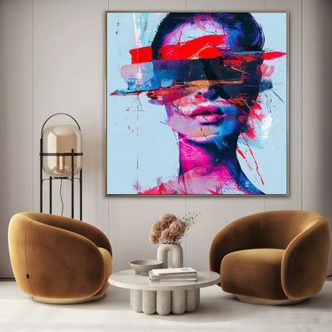 "Emozioni Riflessi" je print na platnu koji hvata bit modernog i apstraktnog. Kompozicija predstavlja žensko lice, djelomično skriveno odvažnim, živim potezima intenzivnih boja.