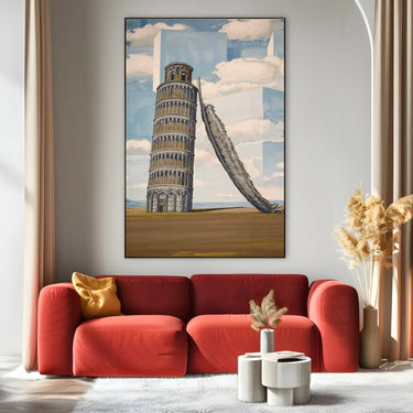 "Sjećanja s putovanja" Renéa Magrittea otisak je na platnu koji prikazuje bit nadrealizma. Slika predstavlja toranj u Pisi, talijansku arhitektonsku ikonu, u kombinaciji s golemim perom. Ova neobična kombinacija stvara iznenadnu i tajanstvenu atmosferu, tipičnu za Magritteov stil.