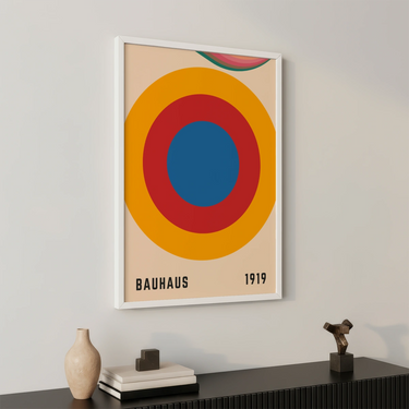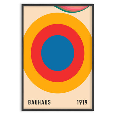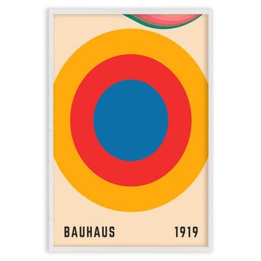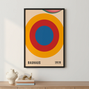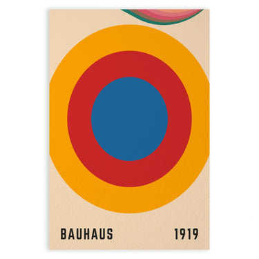 A Poszter egy Bauhaus mozgalom ihlette dizájnt ábrázol, amelyet egyszerű geometriai formák és élénk színek jellemeznek. A Poszter közepén egy sor koncentrikus kör található, amelyek vonzó vizuális hatást keltenek.