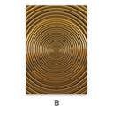 Šis stulbinantis drobės spaudinys susideda iš trijų skirtingų plokščių, kurios kartu sukuria šiuolaikišką ir įtaigų meno kūrinį. Kiekviena plokštė turi unikalų, tačiau vienas kitą papildantį dizainą su koncentrinėmis linijomis ir geometriniais raštais.
