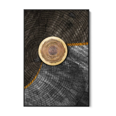 Pirmajame skydelyje kairėje pavaizduota medžio kamieno dalis su išsamiais augimo žiedais, laiko ir gamtos simboliu. Centrinėje panelėje dominuoja auksiniai koncentriniai apskritimai, kurie sukelia judėjimo ir energijos pojūtį. Trečiajame skydelyje dešinėje pavaizduoti auksiniai spinduliai, besiplečiantys į išorę, simbolizuojantys šviesą ir viltį.