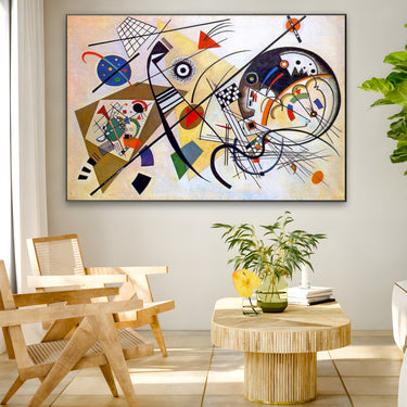 Il quadro "Tratto Continuo" di Wassily Kandinsky è un'opera d'arte astratta che cattura l'essenza del movimento e dell'energia attraverso una composizione dinamica di forme e colori. Questa stampa su tela è un esempio perfetto dell'abilità di Kandinsky nel creare armonia visiva utilizzando linee, cerchi e altre figure geometriche.