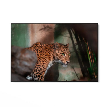 "Plēsēja čuksti" ir audekla druka, kas iemūžina leoparda mežonīgo un noslēpumaino būtību. Kaķveidīgais ar savu plankumaino kažoku un caururbjošajām acīm šķiet, ka iznirst no ēnas, gatavs uzlēkt. Ainavas kompozīcija pauž spriedzes un spēka sajūtu, kas raksturīga plēsējiem dabā.