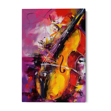 Het schilderij "Suono Speciale" is een print op canvas die de levendige essentie van muziek vastlegt door middel van het beeld van een viool. De compositie is dynamisch en vol energie, met gedurfde penseelstreken en heldere kleuren die zich in visuele harmonie vermengen.