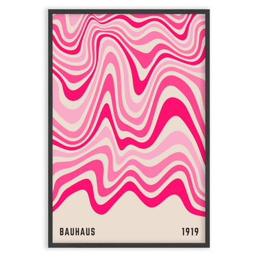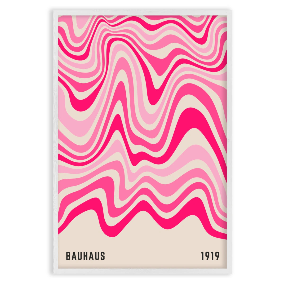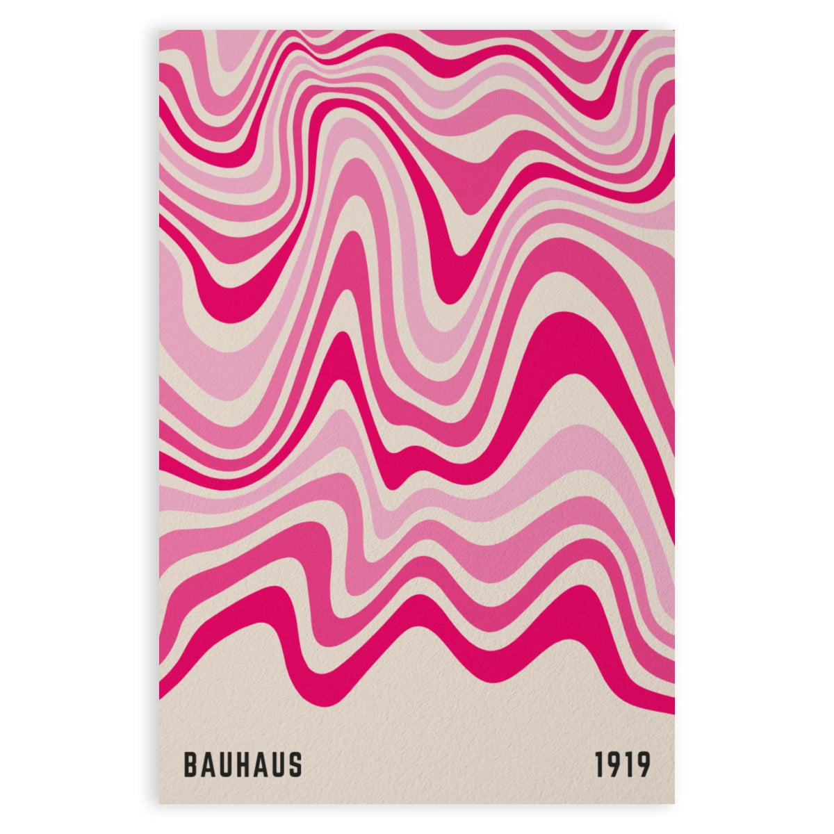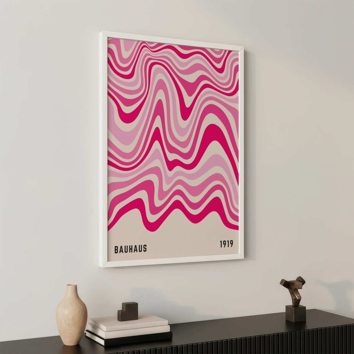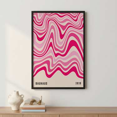 Le linee ondulate si intrecciano e si sovrappongono, generando un senso di profondità e movimento. Il contrasto tra le tonalità di rosa e lo sfondo beige aggiunge un tocco di eleganza e modernità. Questo poster è perfetto per aggiungere un tocco di vivacità a qualsiasi ambiente.