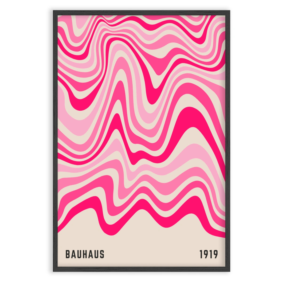 In basso a sinistra, il poster presenta la scritta "BAUHAUS", richiamando lo stile artistico e architettonico nato nel 1919. Questo dettaglio rende l'opera non solo un elemento decorativo, ma anche un omaggio a uno dei movimenti più influenti del XX secolo.