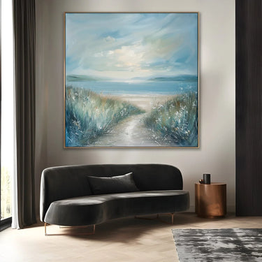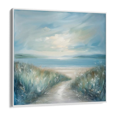 „Path to the Sea” este o imprimare uimitoare pe pânză care surprinde esența unei plimbări liniștite la plajă. Tabloul reprezintă o potecă de nisip care șerpuiește prin dune înierbate, conducând privitorul spre o mare calmă și senină.