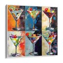 Fiecare secțiune a tabloului reprezintă un pahar de Martini văzut din față, cu diverse detalii care conferă o notă de eleganță și prospețime. Decorațiunile cu fructe adaugă un element de realism și vă invită să vă imaginați gustul răcoritor al băuturii.