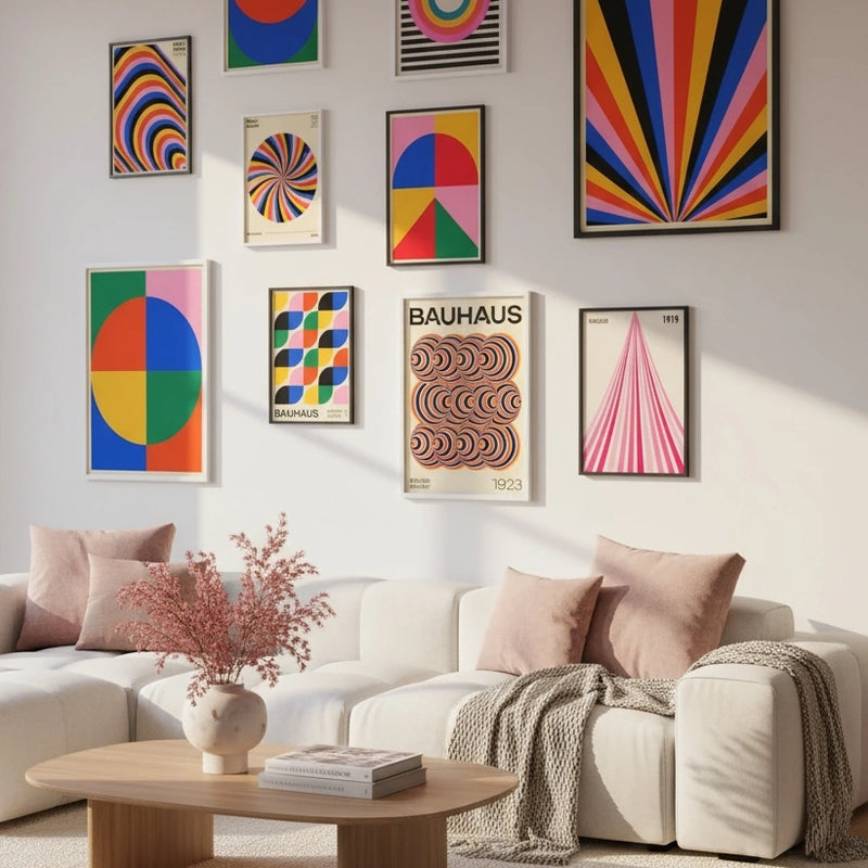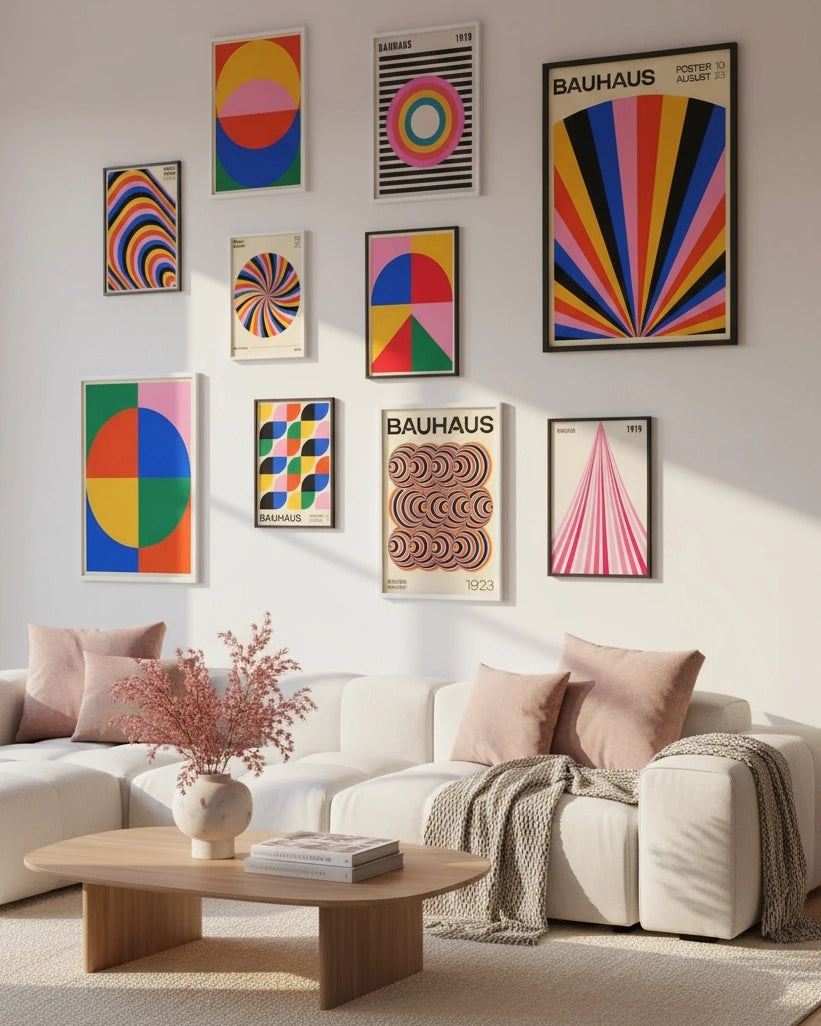 Geometria, rovnováha a farba: plagáty, ktoré reinterpretujú estetiku Bauhausu v modernom kľúči, spájajúc umenie a nadčasový dizajn.