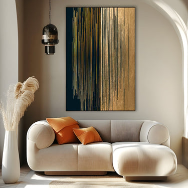 Tyget är spänt och handfäst på baksidan av den inre ramen. Tack vare ett djup på 2,5 cm erbjuder ramen ett konstverk klart att hängas upp och att framhäva i varje rum.