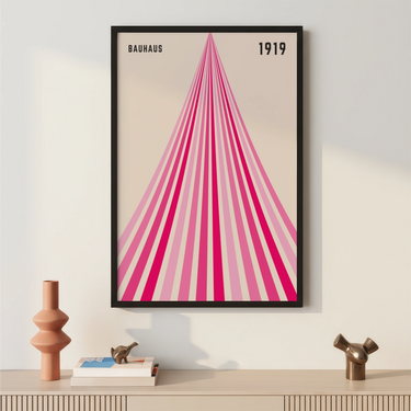 Affischen "Linee Ascese" är en hyllning till Bauhaus-stilen, daterad 1919. Denna minimalistiska och geometriska design representerar en serie linjer som konvergerar uppåt och skapar en känsla av uppstigning och rörelse.