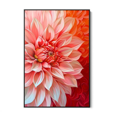 Målningen utstrålar en känsla av värme och vitalitet, tack vare den skickliga användningen av färger och den detaljerade representationen av kronbladen. Varje kronblad är omsorgsfullt målat och visar de känsliga ådrorna och färgvariationerna som gör blomman nästan verklig. Den övergripande effekten är den av ett konstverk som ger en touch av natur och skönhet till alla miljöer.