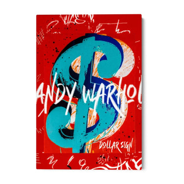 Dollartecknet representerar temat konsumism och kapitalism, återkommande teman i Warhols verk. Skriften "Andy Warhol" går diagonalt över symbolen och framhäver konstnärens autenticitet och signatur.